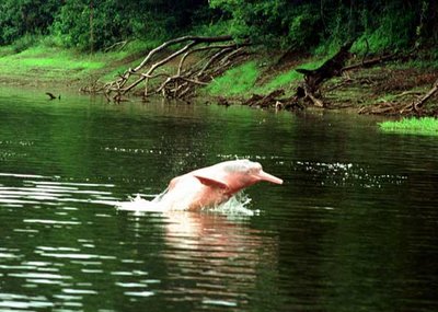 Alvorada às 4h30, tomei o energético e parti para minha jornada. Um formidável coral de guaribas fazia sua apresentação na Costa do Giba, em frente à ilha das graças. Curiosamente, assim que comuniquei ao Comandante Mário para que desligasse os motores do Piquiatuba e escutasse a sinfonia os macacos cantantes, interromperam de imediato sua soturna apresentação. Parei para descansar na foz do Furo Comprido e fiquei admirando a evolução dos botos vermelhos e tucuxis que atacavam os enormes cardumes de sardinhas de rio. A água parecia ferver e as sardinhas saltavam apavoradas tentando escapar dos vorazes predadores. Prosseguindo minha jornada me deparei com as enormes e belas Barreiras do Carauaçu (erosões) a Nordeste do meu deslocamento e pedi que o pessoal de bordo as fotografasse antes que entrássemos no Furo do Albano. As Barreiras multicoloridas variavam dos 70 a 120 metros de altura e emprestavam um novo e extraordinário visual ao itinerário. No furo fizemos mais uma parada num grande areal e mostrei minha futura rota que seriam as Barreiras Vermelhas. Logo depois de sair do Furo fui acompanhado, brevemente, por um enorme boto vermelho. Fiz mais uma parada à sombra de uma enorme árvore e chamei, novamente, o pessoal de apoio para esticar as pernas e fotografar o belo local. Depois do breve descanso rumei diretamente para o Paraná do Mocambo (Arari) onde acampamos num remanso entre um banco de areia e a margem esquerda. A brisa fresca, as areias, davam um toque especial à nossa parada. A noite foi acompanhada por insistentes bufares de botos vermelhos e focos de holofotes já que estávamos no alinhamento da rota das balsas que subiam o Rio Amazonas.